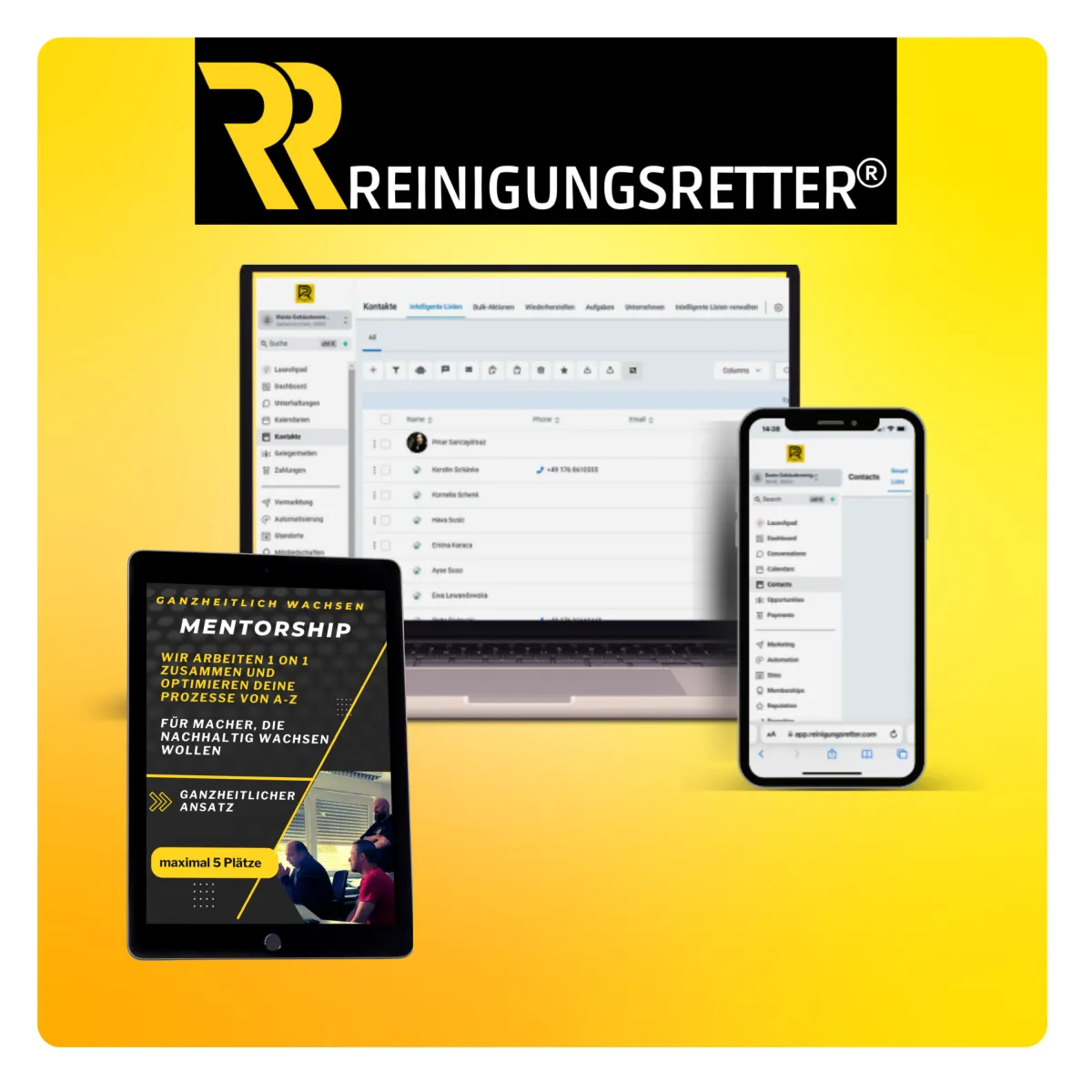 Der Reinigungsretter ist deine Schaltzentrale für ein skalierbares Unternehmen. Von automatisierter Angebotserstellung über Bewerberkommunikation bis hin zu E-Mail- & WhatsApp-Marketing: Alles in einem System – 100 % auf Gebäudereiniger abgestimmt.