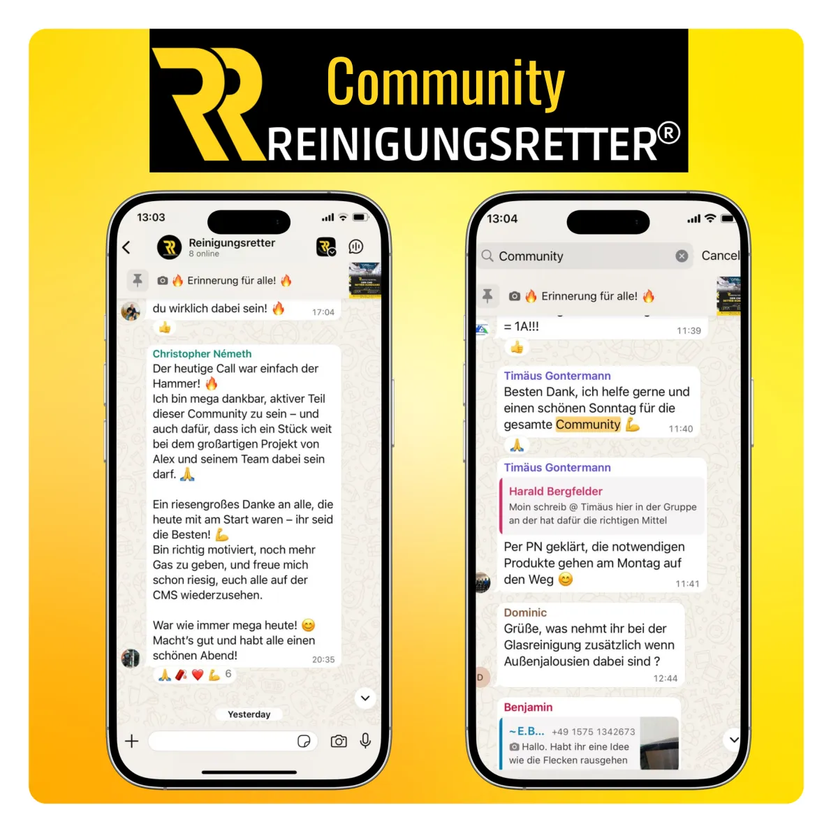 Du musst diesen Weg nicht allein gehen. In unserer Community triffst du andere Gebäudereiniger, die genau wissen, wovon du sprichst. Unternehmer, die wachsen wollen. Die bereit sind für den nächsten Schritt. Die Herausforderungen kennen – und sie gemeinsam meistern.